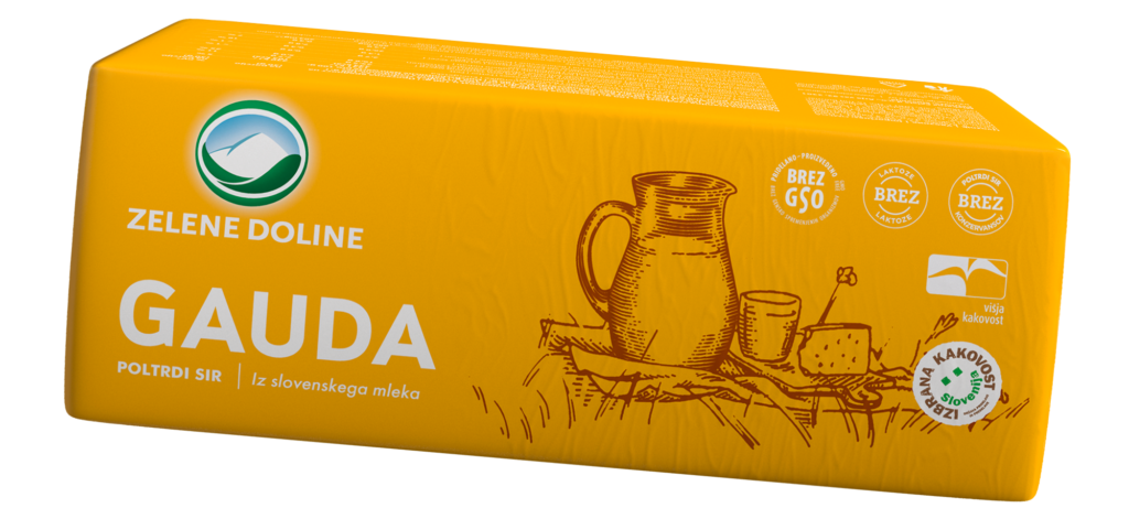 Sir Gauda Zelene Doline odlikuje blag, mil okus, zato je primeren za to, da z njim popestrite sendviče, narezke in ostale gurmanske jedi. Narejen je izključno iz mleka slovenskih kmetij.