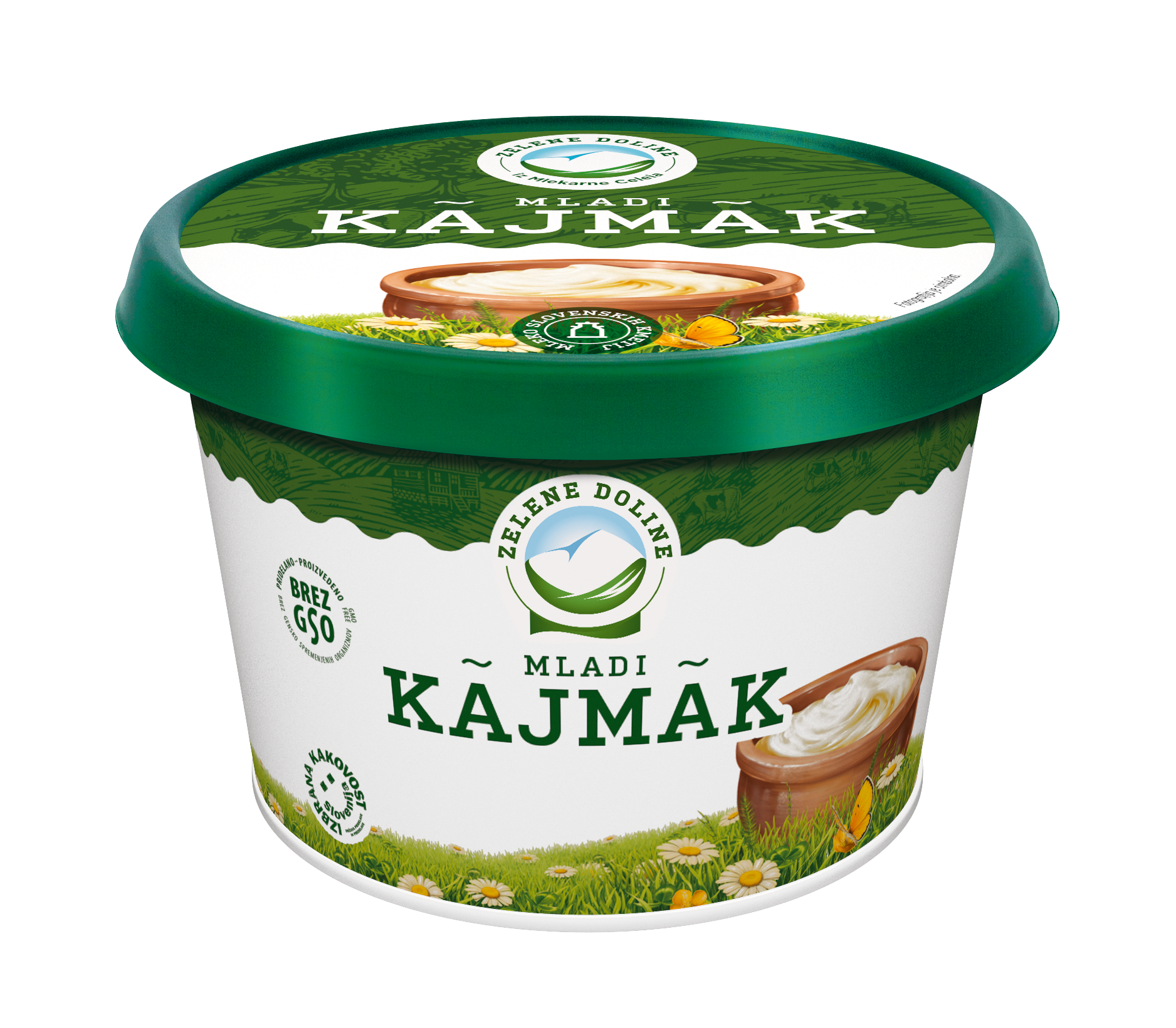 Okusite odlični mladi kajmak Zelene Doline iz slovenskega mleka, ki vas bo popeljal na nepozabno pustolovščino kulinaričnega druženja. Nepogrešljiv je kot priloga jedem ob žaru, na svežem kruhu ali na popečenih rezinah toasta in zlatega prepečenca.