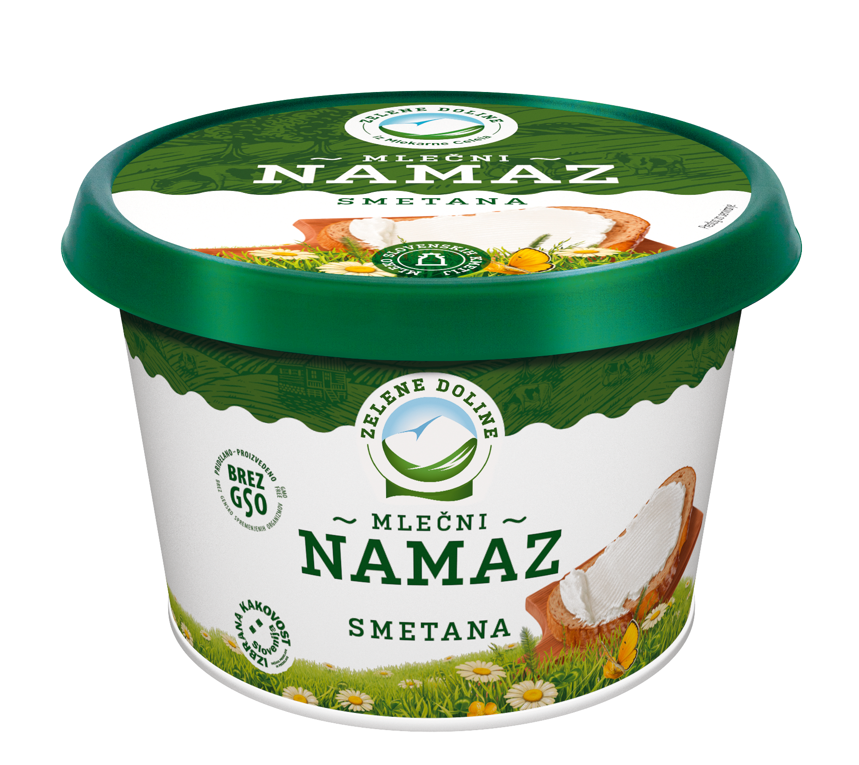 Poizskusite odličen Mlečni namaz smetana – prvi slovenski mlečni namaz brez aditivov s piransko soljo in blagim ter prijetnim smetanovim okusom iz najboljšega mleka slovenskih kmetij.