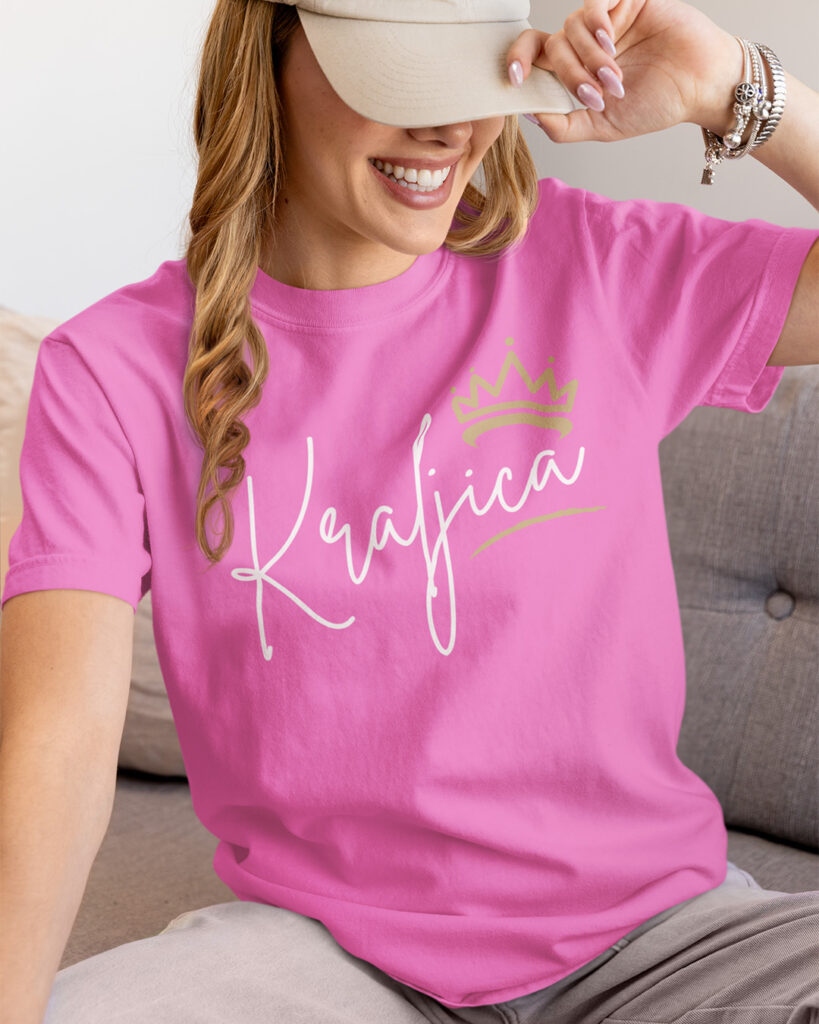 V Zelenih Dolinah verjamemo, da je vsaka predstavnica ženskega spola prava kraljica. Da se boš tako tudi počutila, smo izdelali majico, ki te bo na to vedno znova opomnila.