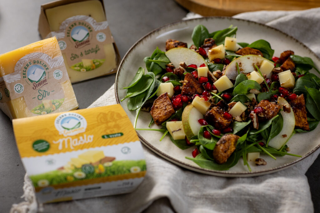 Preizkusite recept za osvežilno solato s pridihom jeseni in izvrstnim Senenim sirom Zelene Doline, ki bo okusom dodal piko na i.